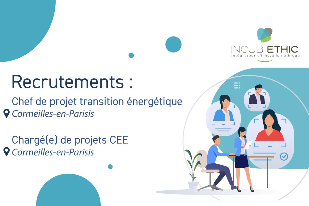 🔎 Nous sommes à la recherche d’un(e) Chargé(e) de projets CEE et d’un(e) Chef de projet transition énergétique prêt(e)s à rejoindre l’aventure Incub’Ethic.
